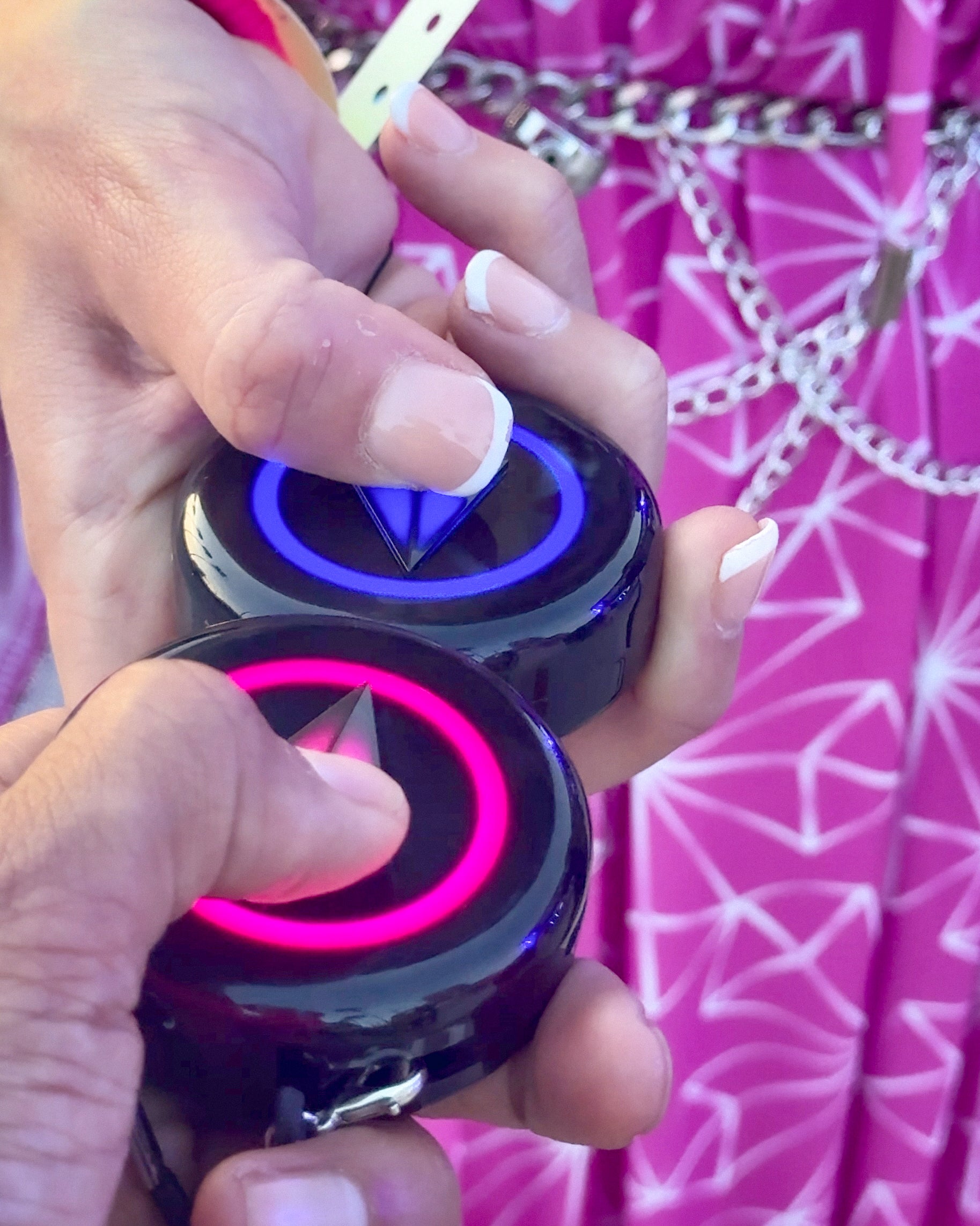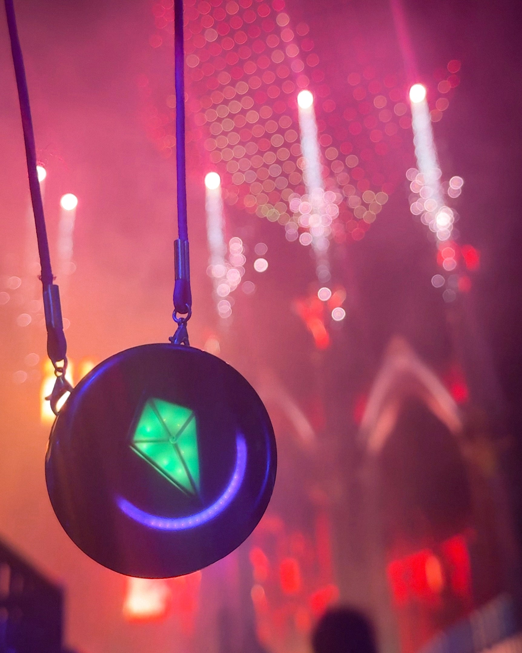 Der Totem Compass verwendet keine haptische Rückmeldung (Vibration). Vibrationen sind bei Veranstaltungen oder in Menschenmengen schwer wahrnehmbar, daher haben wir den Totem so konzipiert, dass er ausschließlich über Licht und Farbe kommuniziert.